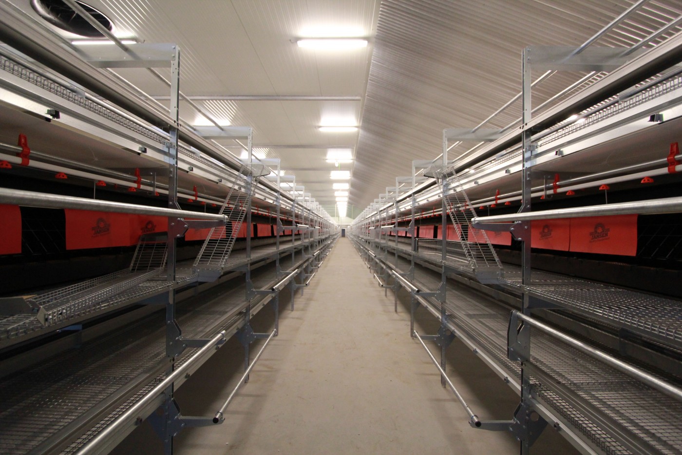 Each floor of the aviary system is equipped with plastic TwinWorld slats or wire slats with an open structure and manure belts for good manure removal and hygiene in the house.